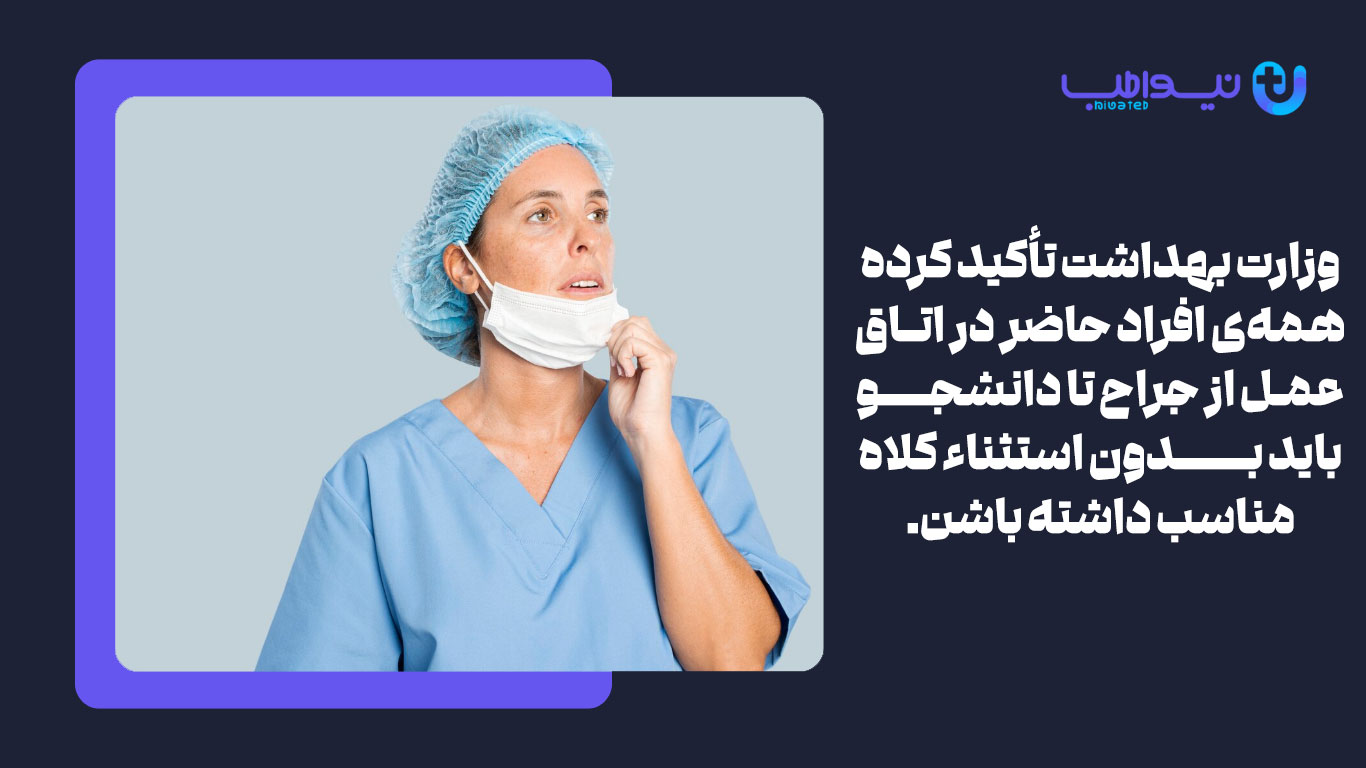 الزام پوشش برای تمامی افراد حاضر در اتاق عمل: از جراح تا پرستار سیرکولر و دانشجوی حاضر در بخش، همگی باید کلاه مناسب بپوشند.