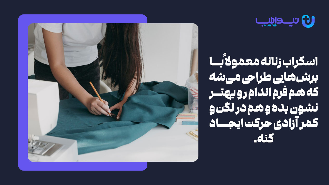 تناسب با فرم بدن برای جلوگیری از محدودیت حرکتی: در اسکراب زنانه، طراحی انداممحور ممکن است در صورتی که سایز اشتباه انتخاب شود، به محدودیت حرکتی منجر شود. انتخاب مدلی که در ناحیه سینه و لگن فضای کافی داشته باشد، برای انجام حرکات سریع و نشستنهای طولانی اهمیت دارد.