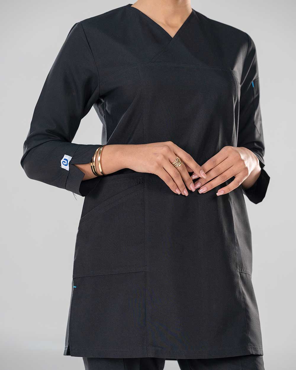 رنگ مشکی همواره نشانهی وقار، نظم و اعتماد بهنفس است. این اسکراب برای افرادی طراحی شده که در محیطهای جدی و حرفهای فعالیت میکنند. مناسب برای: